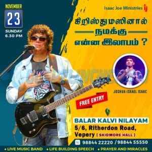 Get ready for a night of worship and redemption! After 7 long years, *U, Me & HIM* is back with the ‘The Redemption Tour’, LIVE! *Chennai*: 19, 20 & 21 Dec ‘25 – Museum Theatre, Egmore Get your tickets now joelthomasraj.com/umehim #TheRedemptionTour #JoelThomasraj #UMe&Him #Chennai #Bengaluru #Coimbatore #Madurai #LiveInWorship #ChristianMusic #ChristianConcertIndia #GospelMusicIndia #WorshipNight #FaithThroughMusic #JesusMusic