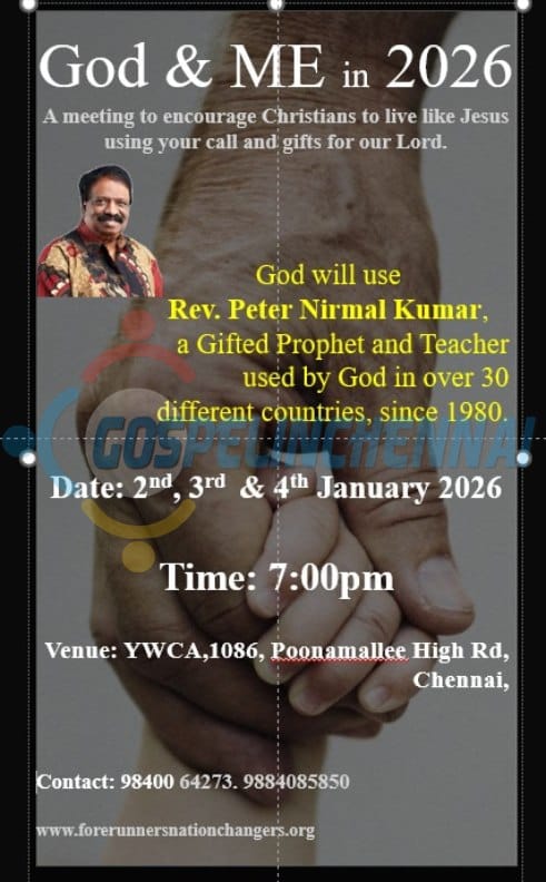 Home EVENTS God & Me in 2026 God & Me in 2026 Phone 9840064273+ Add to Google Calendar+ iCal / Outlook export DateJan 02 2026 Friday Time 7:00 pm LabelsNEW,Recurring Event LocationYWCA International Guest HousePoonamallee High Road, Periamet, Vepery, ChennaiNext Occurrences Jan 03 2026 7:00 pm - Jan 04 2026 7:00 pm - Share this event Weather Mist 81 °F °MetricWind: 9 MPHHumidity: 74 %Feels like: 83 °F X