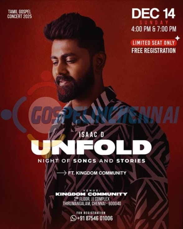 Home EVENTS UNFOLD UNFOLD Phone 8754601006+ Add to Google Calendar+ iCal / Outlook export DateDec 14 2025 Sunday Time 7:00 pm LocationKingdom CommunityGaingaiammaannagar, Thirumangalam, ChennaiShare this event Weather Mist 78 °F °MetricWind: 9 MPHHumidity: 83 %Feels like: 81 °F X